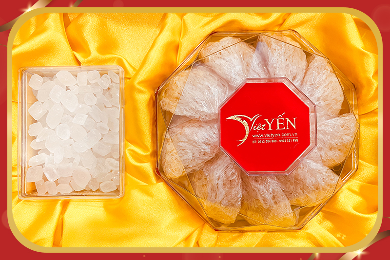 Hộp bao gồm: 100g yến nguyên chất, đường phèn.